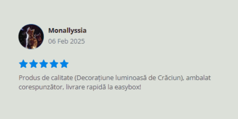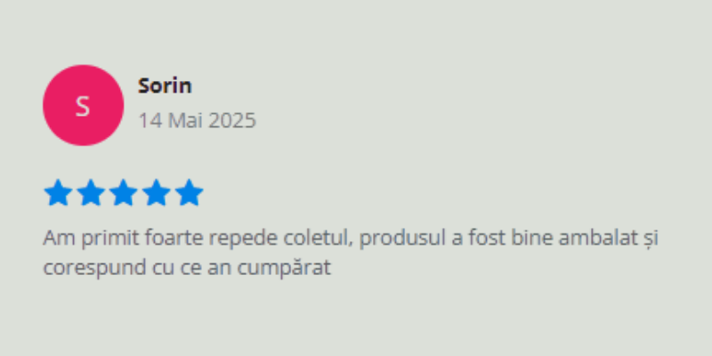 Alegând magazinul nostru profiți de o varietate de produse la prețuri accesibile, reduceri atractive, livrare rapidă în toată țara, livrare în easybox, resigilate cu poze reale, garanția returului și comandă telefonică, fără adresă de e-mail.