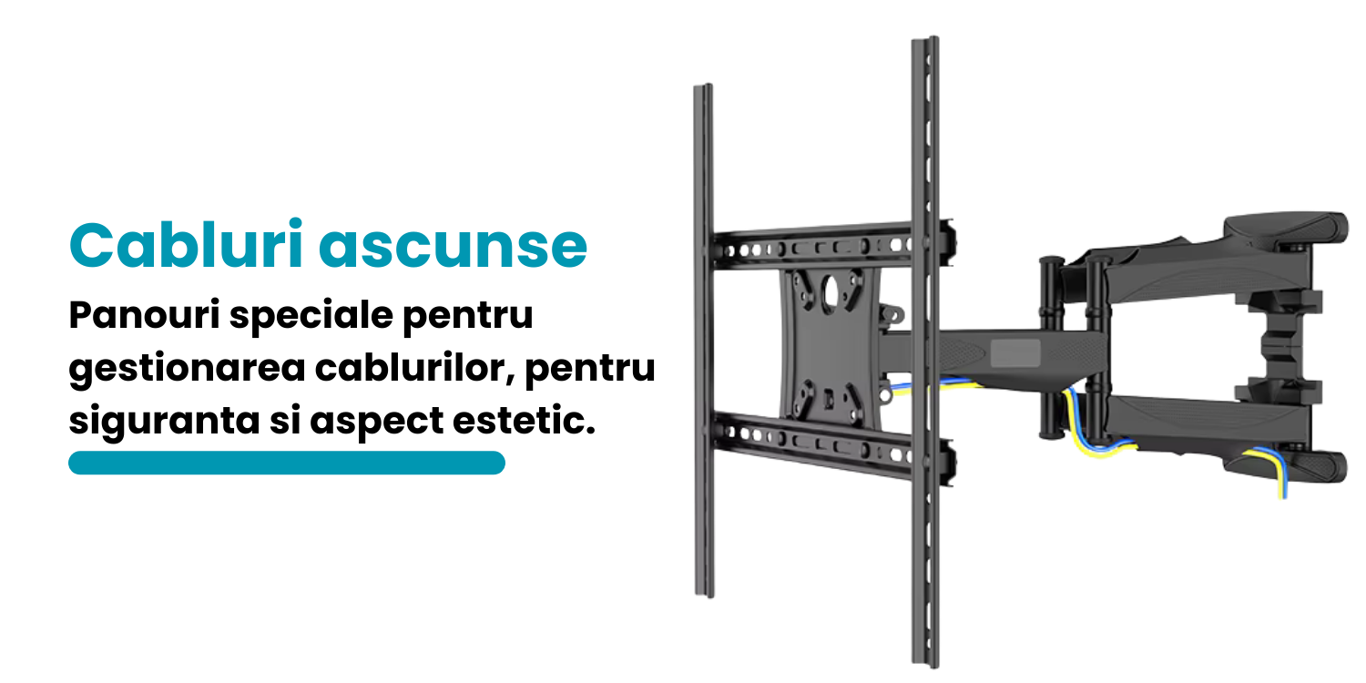 Design cu cabluri ascunse – datorita panourilor speciale de gestionare a cablurilor, vei avea mereu un spatiu organizat si estetic, fara fire la vedere. ⭐