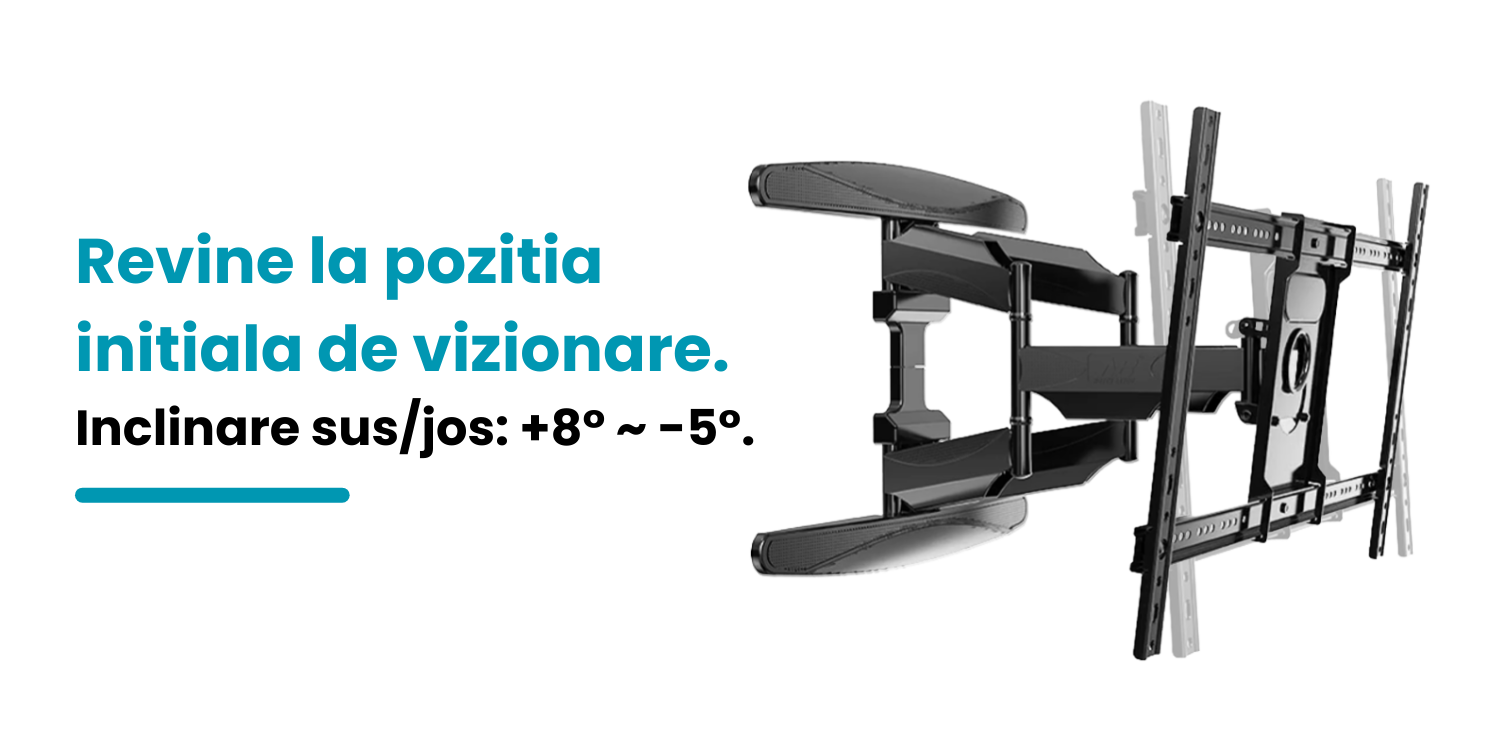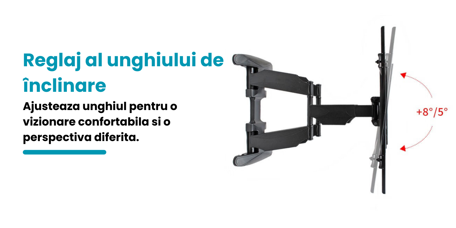 Pentru ca imbina perfect designul modern, practicitatea si siguranta. Iti ofera libertatea de a ajusta televizorul in functie de preferinte si spatiul disponibil, pastrand in acelasi timp un look impecabil si minimalist in incapere.