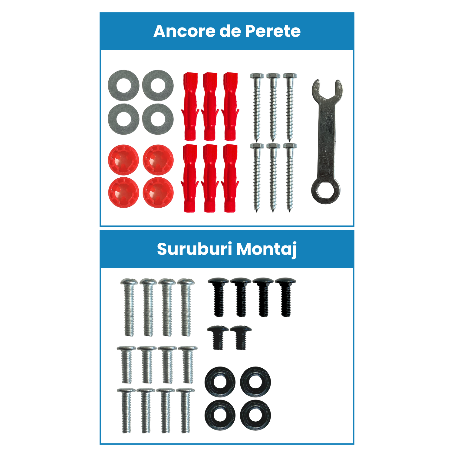 • Instalare rapida si usoara – pachetul include toate suruburile necesare pentru montaj, astfel incat procesul este simplu si intuitiv chiar si pentru utilizatorii fara experienta tehnica.