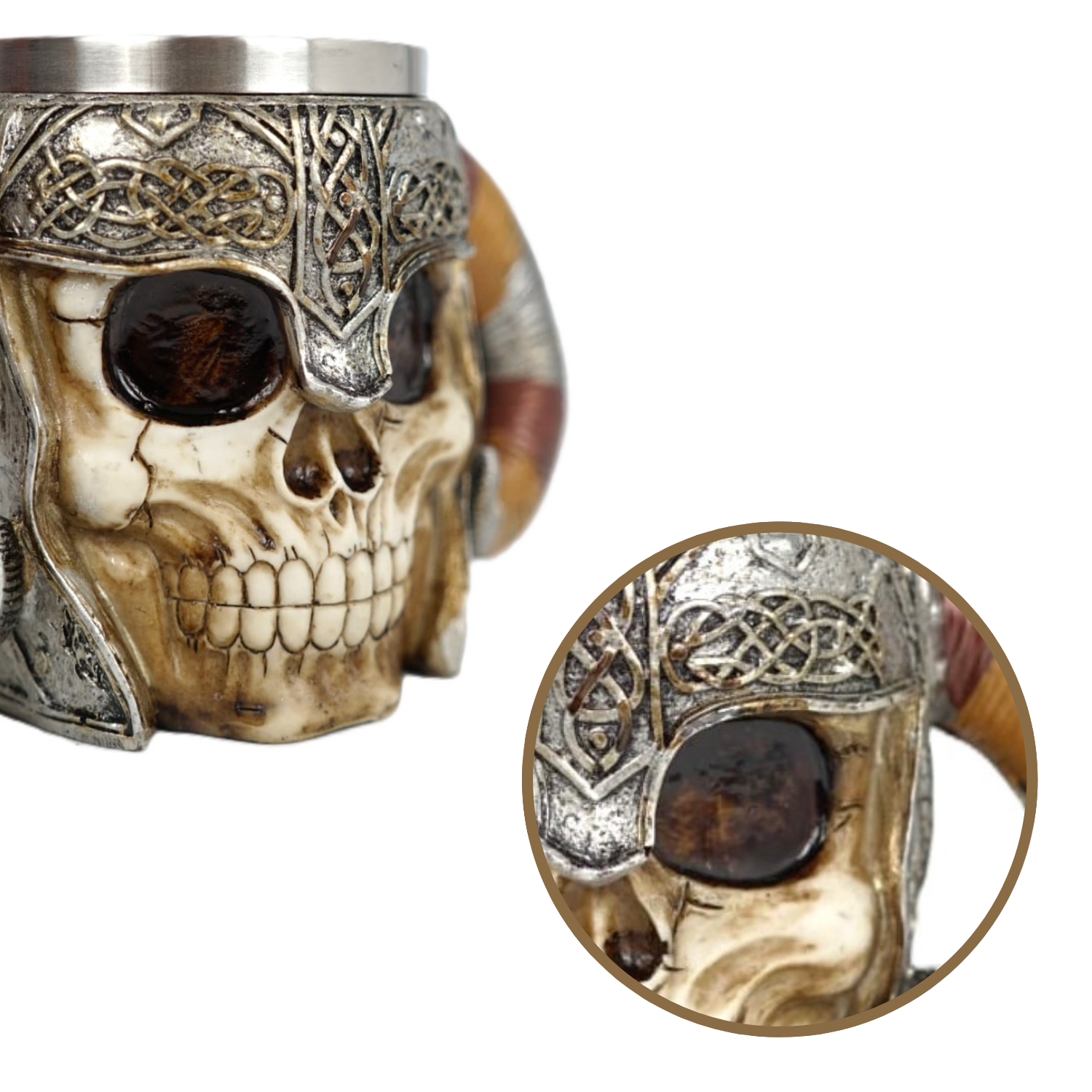 Halba de Bere Viking Skull, 400 ml – Design Impresionant din Inox și Rășină, Perfectă pentru Cadouri și Colecționari