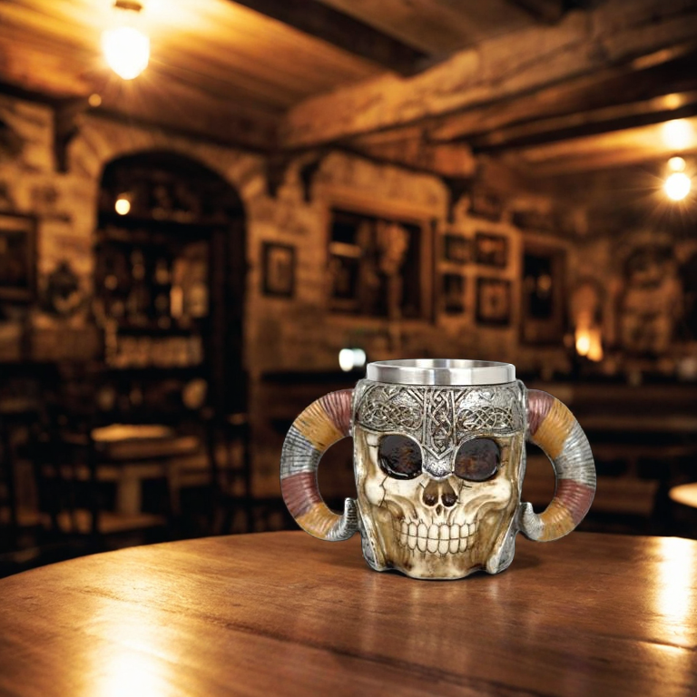 ⚔️ Intră în lumea vikingilor cu această halba de bere de 400 ml, un accesoriu deosebit pentru orice iubitor de bere sau colecționar de obiecte unice! Cu un design care te duce direct în epoca nordică, craniul viking este sculptat meticulos din rășină de calitate superioară, iar interiorul din inox garantează durabilitate și igienă. Ideală pentru a savura o bere rece sau pentru a adăuga o notă de autenticitate decorului tău.