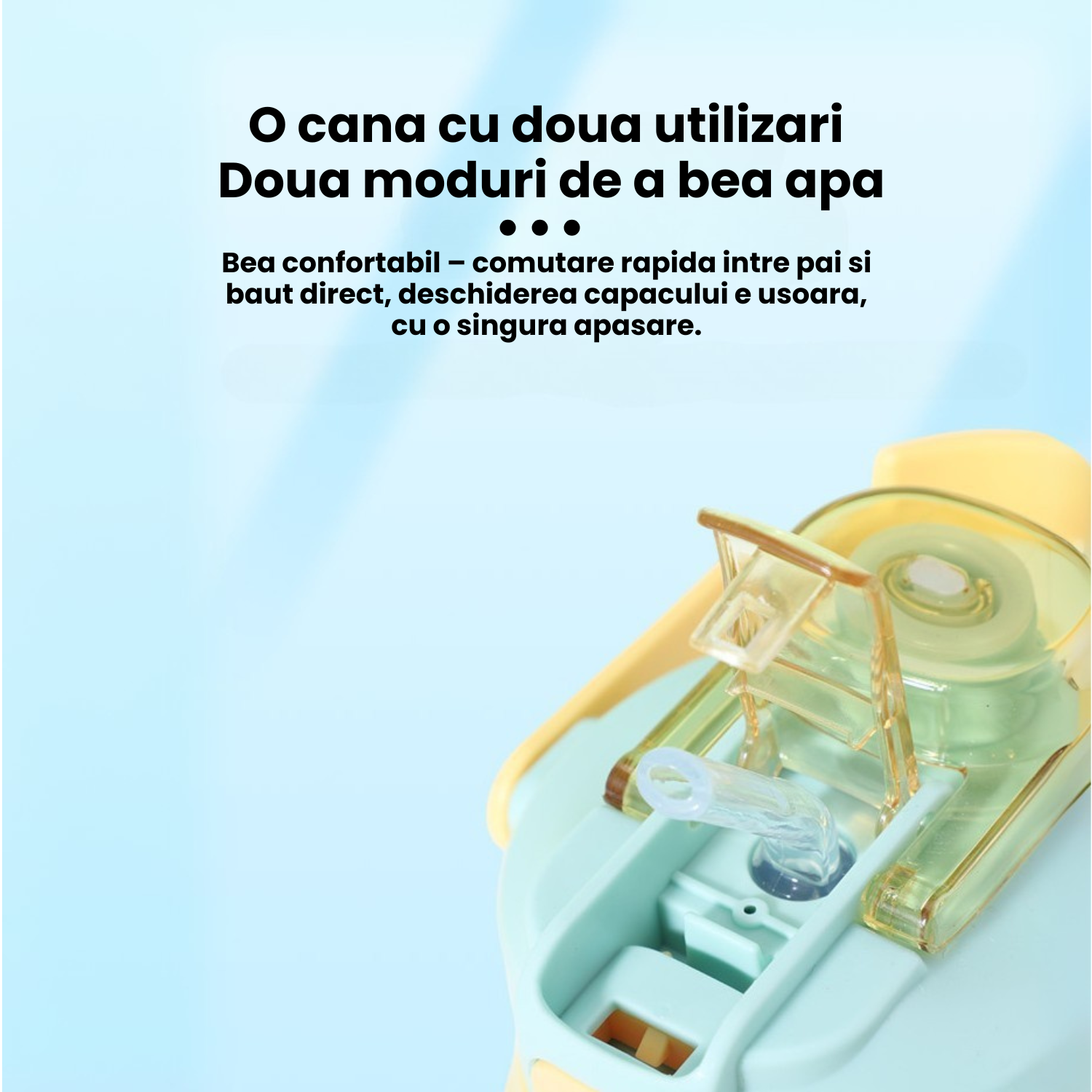 • Doua moduri de utilizare – poti alege sa bei prin pai (fara risc de inecare, ideala pentru copii sau utilizare rapida) sau direct din gura de baut pentru o senzatie revigoranta.