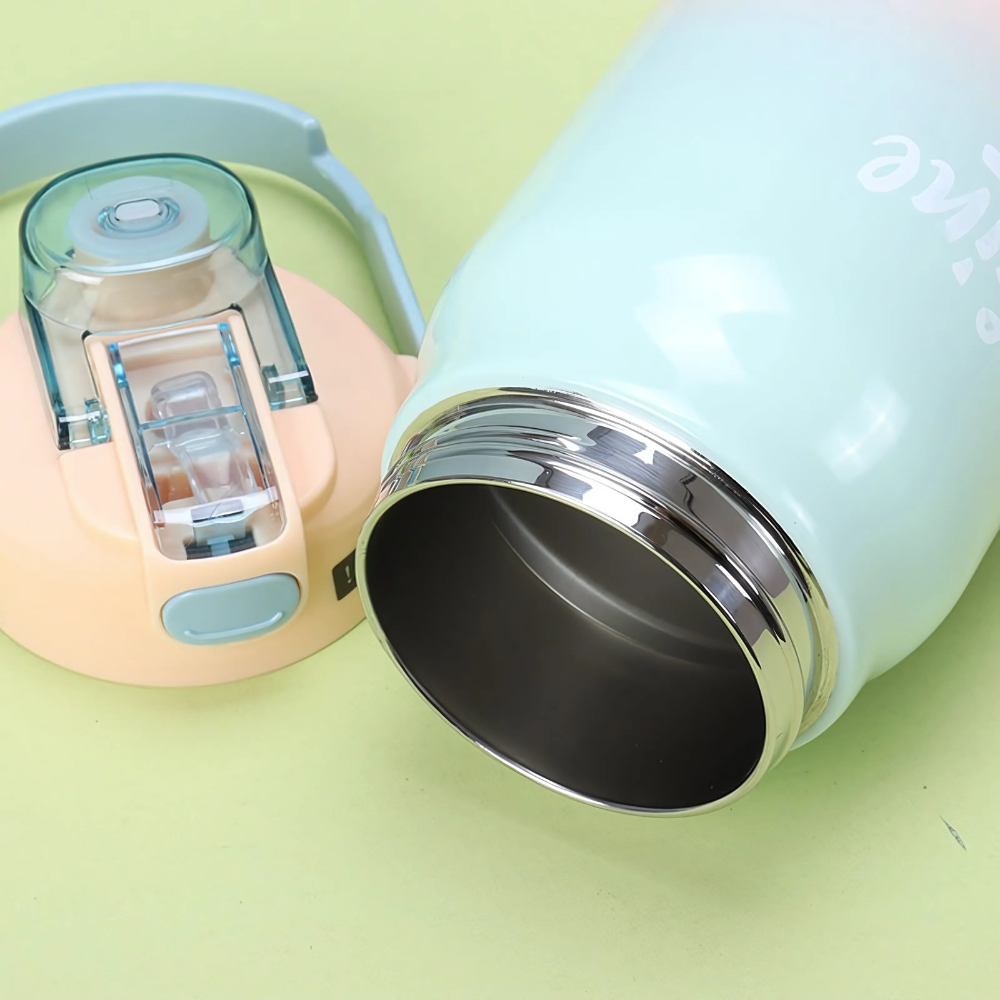 Cana termos Sunshine 1.5L este extrem de simplu de folosit. Deschizi capacul prin apasarea butonului, alegi modul de baut dorit (cu pai sau direct) si te bucuri de hidratare rapida. Capacitatea mare iti asigura autonomie intreaga zi, fara grija reumplerilor frecvente.