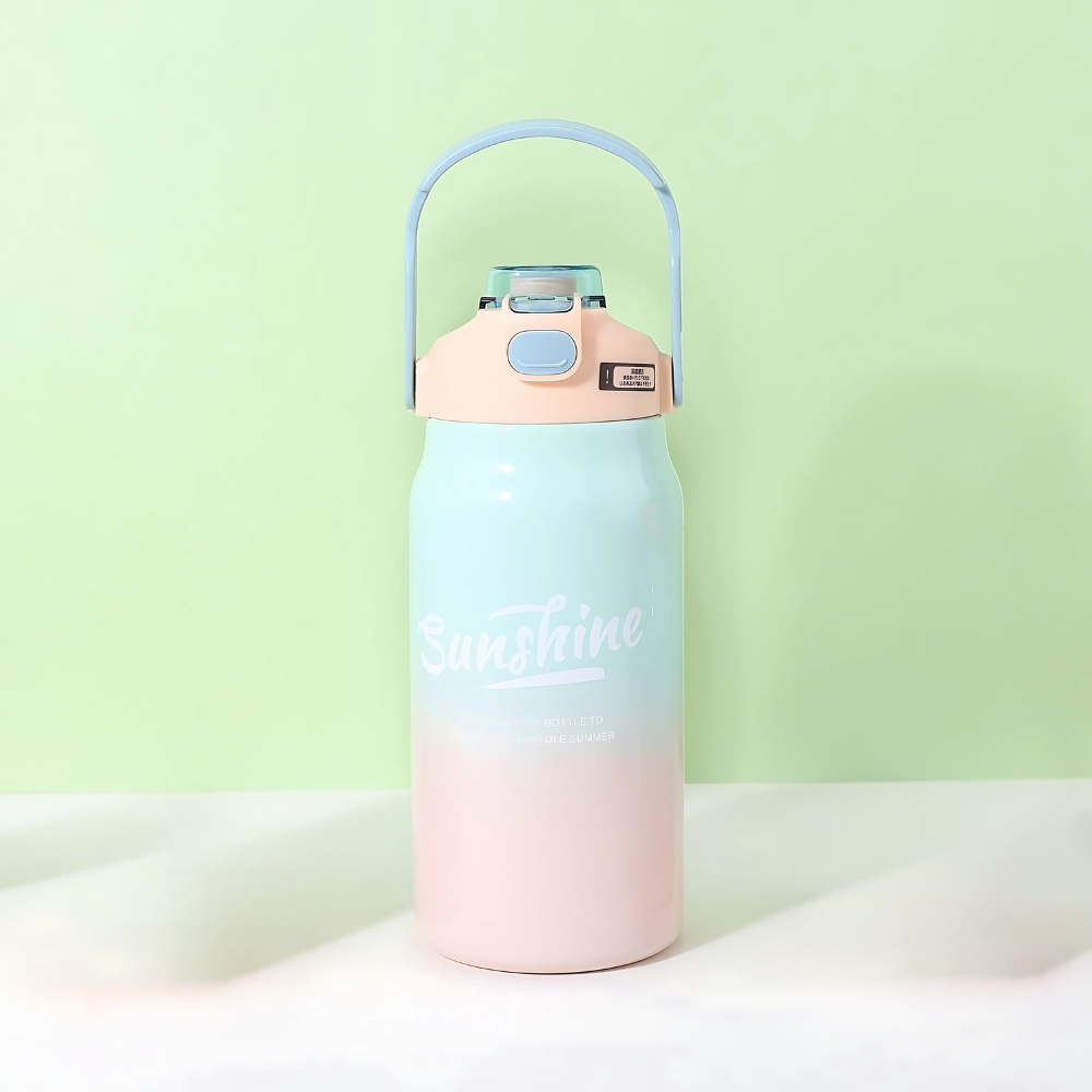 Descopera cana termos Sunshine 1.5L, accesoriul perfect pentru hidratarea zilnica, atat la birou, cat si in aer liber. Cu un design vesel in nuante de galben si albastru pastel, aceasta sticla nu doar ca iti pastreaza bauturile la temperatura ideala, dar iti aduce si o stare de bine prin aspectul sau modern si prietenos ☀️.