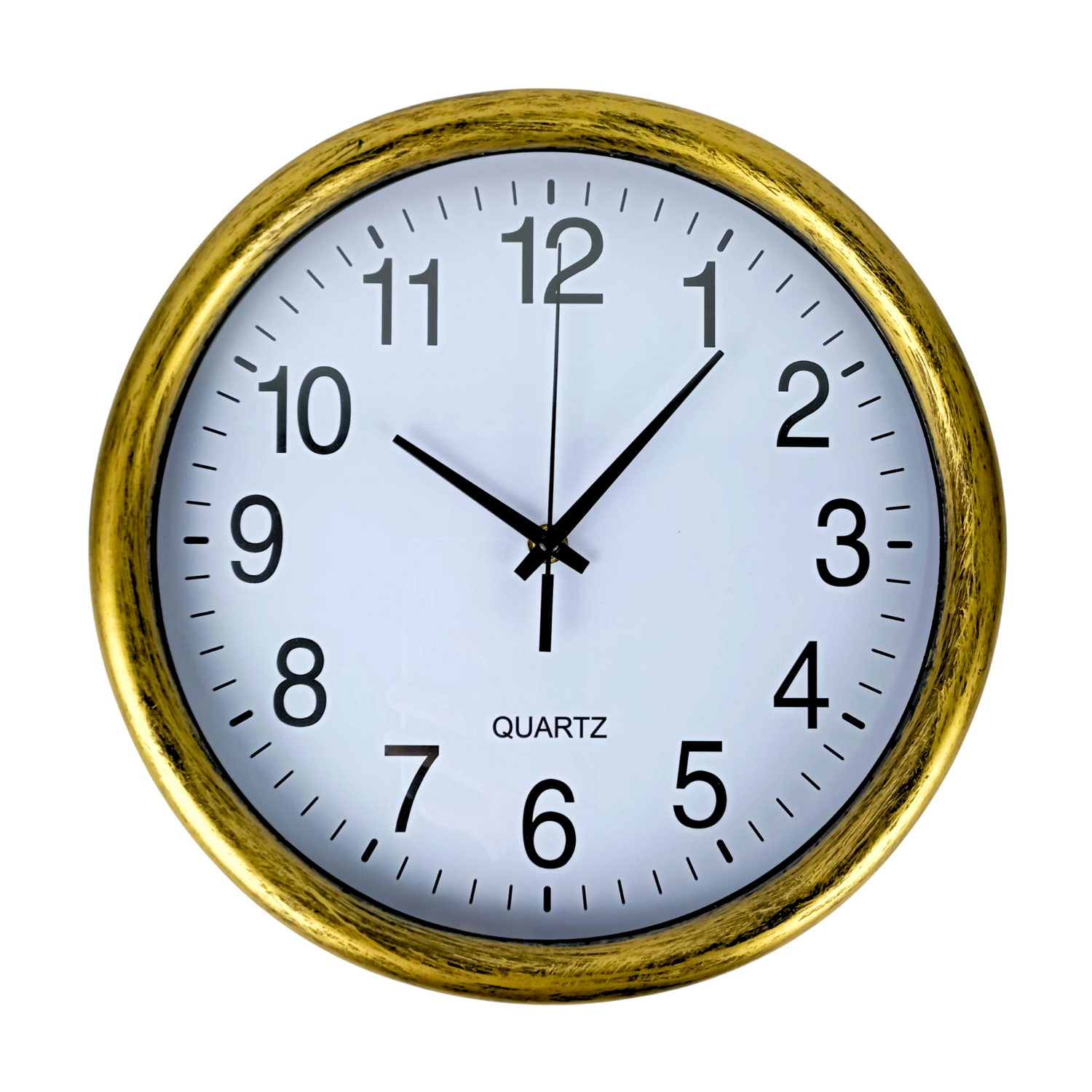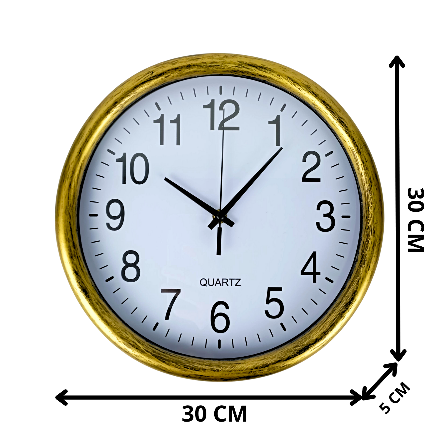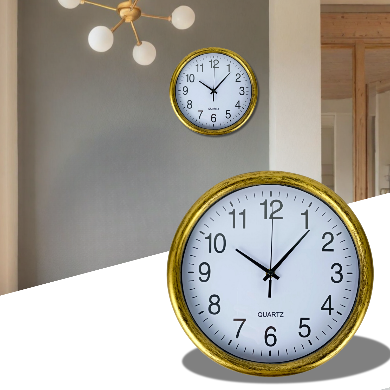 Descopera eleganta si functionalitatea intr-un singur accesoriu de decor cu acest ceas de perete modern cu rama aurie, perfect pentru orice incapere din locuinta sau biroul tau. Cu un diametru de 30 cm, ceasul imbina un design clasic si clar cu detalii moderne, fiind usor de citit chiar si de la distanta.