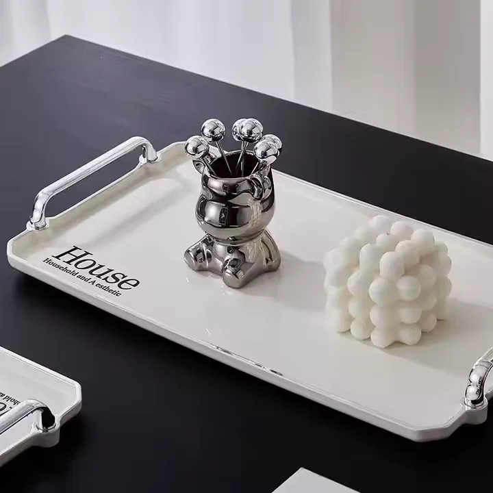 Adauga o nota de eleganta si stil meselor tale cu acest set de 3 platouri dreptunghiulare albe cu manere argintii. Aceste platouri practice si rafinate sunt fabricate din plastic rezistent, oferind astfel o alternativa sigura si estetica pentru servirea aperitivelor, gustarilor sau deserturilor la orice eveniment sau reuniune familiala. ✨