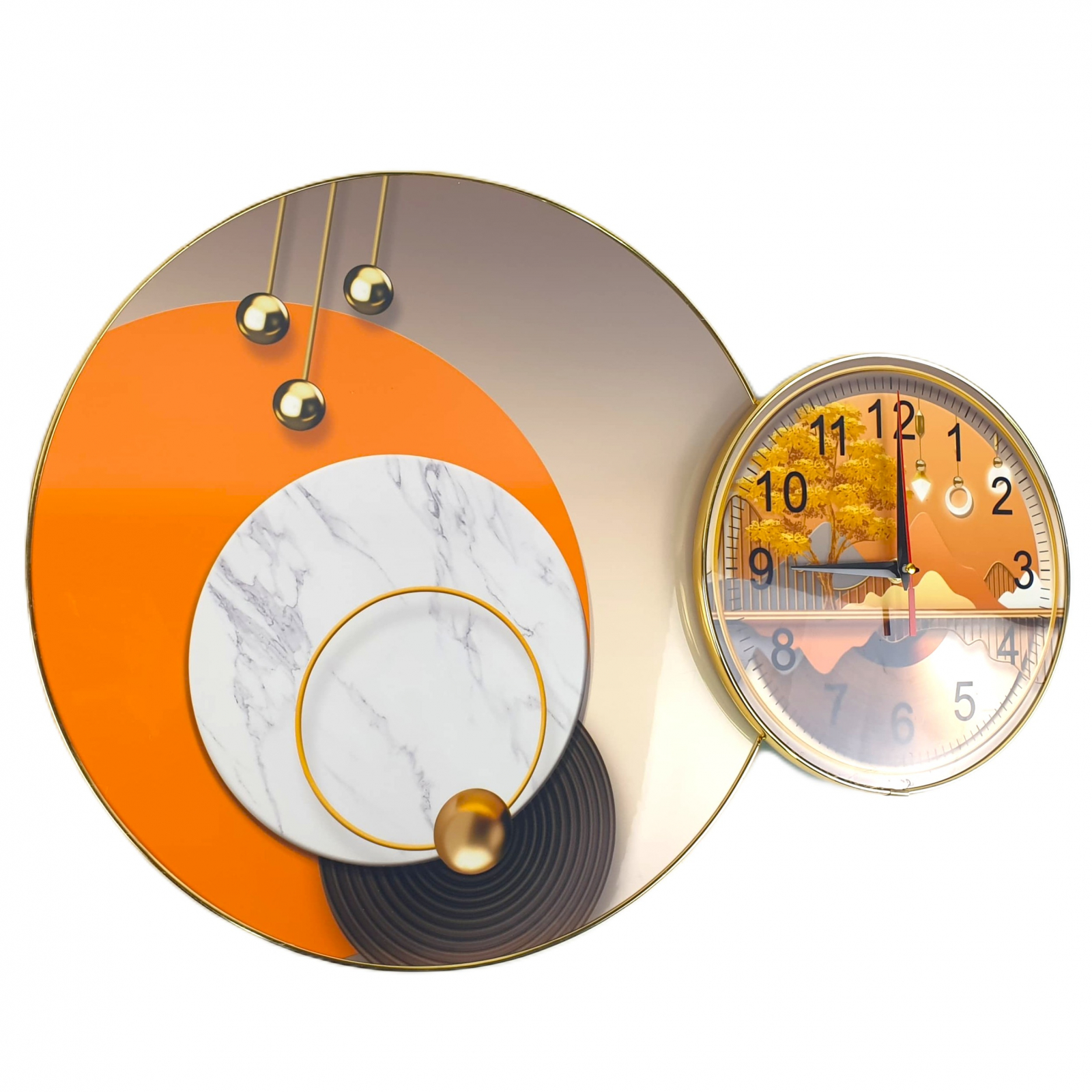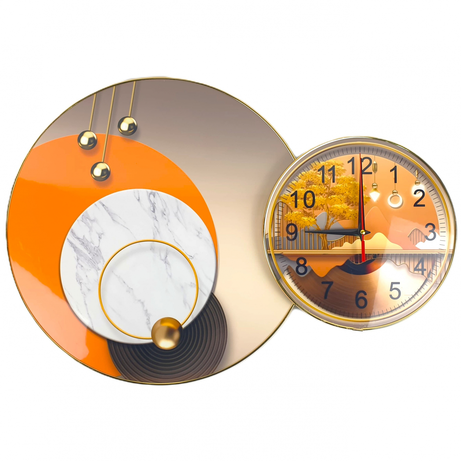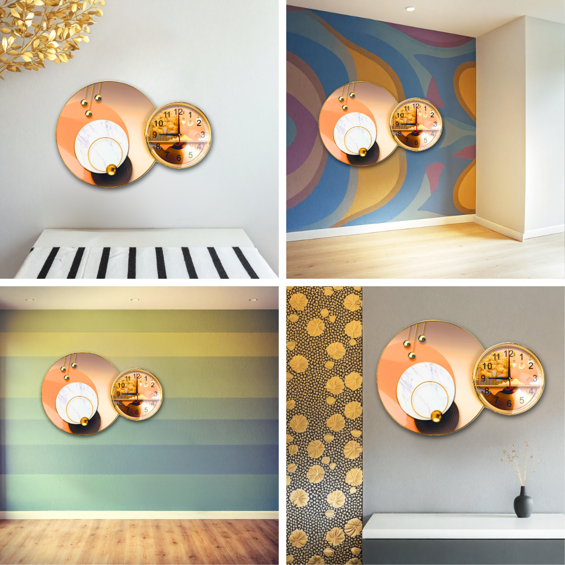 Daca esti in cautarea unui ceas de perete care sa ofere un plus de farmec oricarei incaperi, acest model cu doua cercuri este solutia ideala. Fie ca il asezi in living, dormitor, birou sau hol, vei descoperi cum designul sau modern si detaliile creative reusesc sa transforme complet atmosfera. Cu ajutorul unor imprimeuri deosebite, precum peisaje abstracte, motive naturale (copaci aurii, cerbi decorativi), flori stilizate si forme geometrice sofisticate, ceasul nostru este mai mult decat un simplu instrument de masurare a timpului. Este o piesa de arta ce atrage privirile si starneste admiratia.