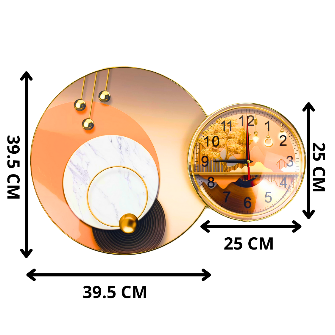 Datorita dimensiunilor sale generoase (un cerc mare si unul mai mic), acest accesoriu devine punctul focal al incaperii, oferindu-i personalitate si un aer sofisticat. Nu doar ca afiseaza ora, dar reuseste si sa puna in valoare mobilierul, luminozitatea naturala si, in general, intregul stil de design interior. Imbinarea dintre texturi (aspect lemn, marmura sau nuante lucioase) si detalii metalice adauga un plus de eleganta si rafinament. ⭐