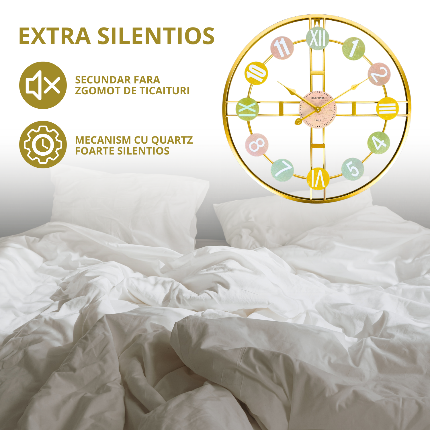 Acest ceas de perete clasic 50 cm cu mecanism silentios nu este doar un instrument util pentru a masura timpul, ci si un accesoriu decorativ premium ce ofera personalitate oricarei incaperi. Fie ca il asezi in living, in dormitor sau in birou, el aduce un echilibru perfect intre functionalitate si estetica.