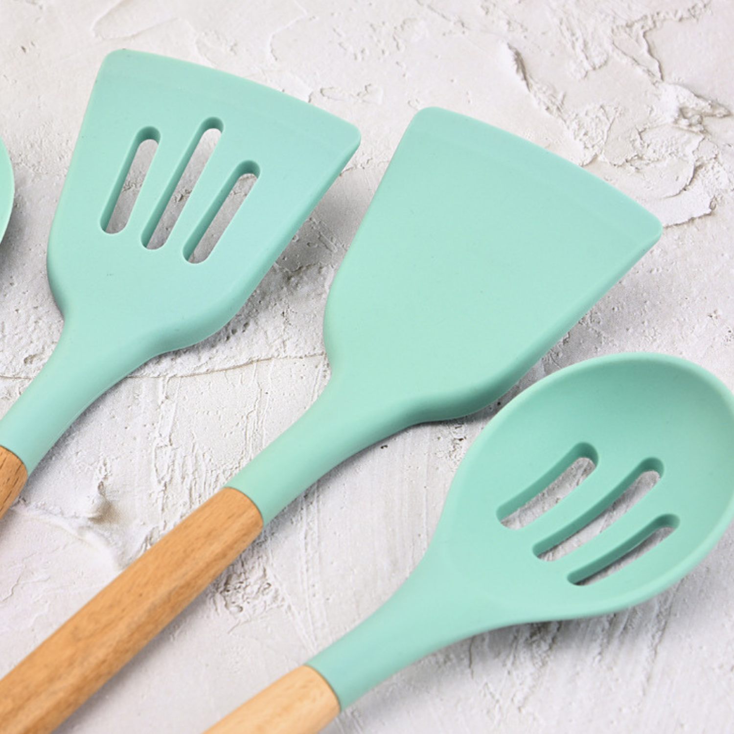 Alege un set complet de ustensile bucatarie premium, creat special pentru a-ti transforma gatitul intr-o experienta placuta si eficienta. Acest set de 11 piese combina perfect functionalitatea cu eleganta, fiind realizat din silicon alimentar rezistent la temperaturi inalte si manere ergonomice din lemn natural. Ustensilele sunt insotite de un suport practic, care te ajuta sa le pastrezi organizate si mereu la indemana in bucatarie.