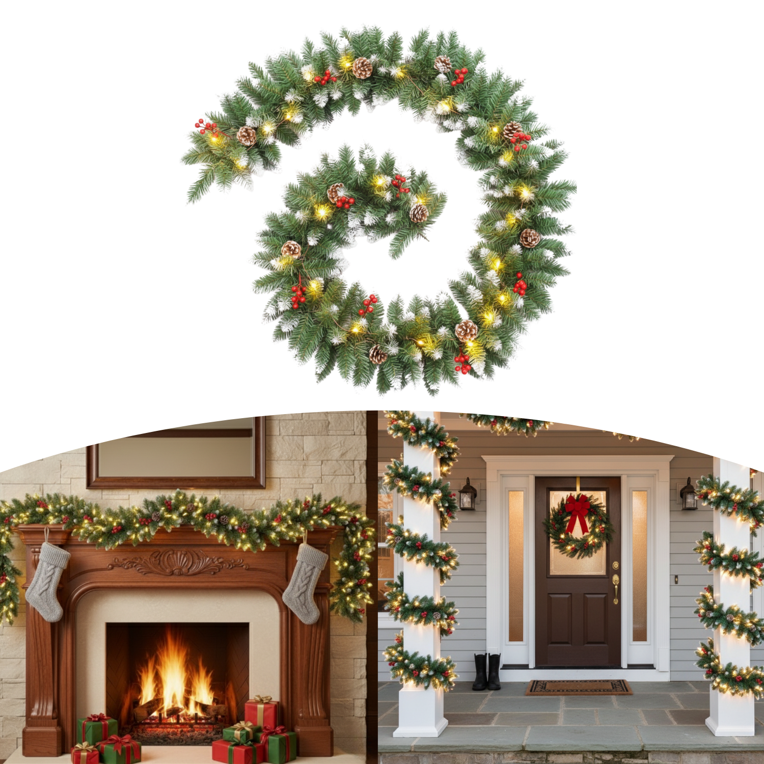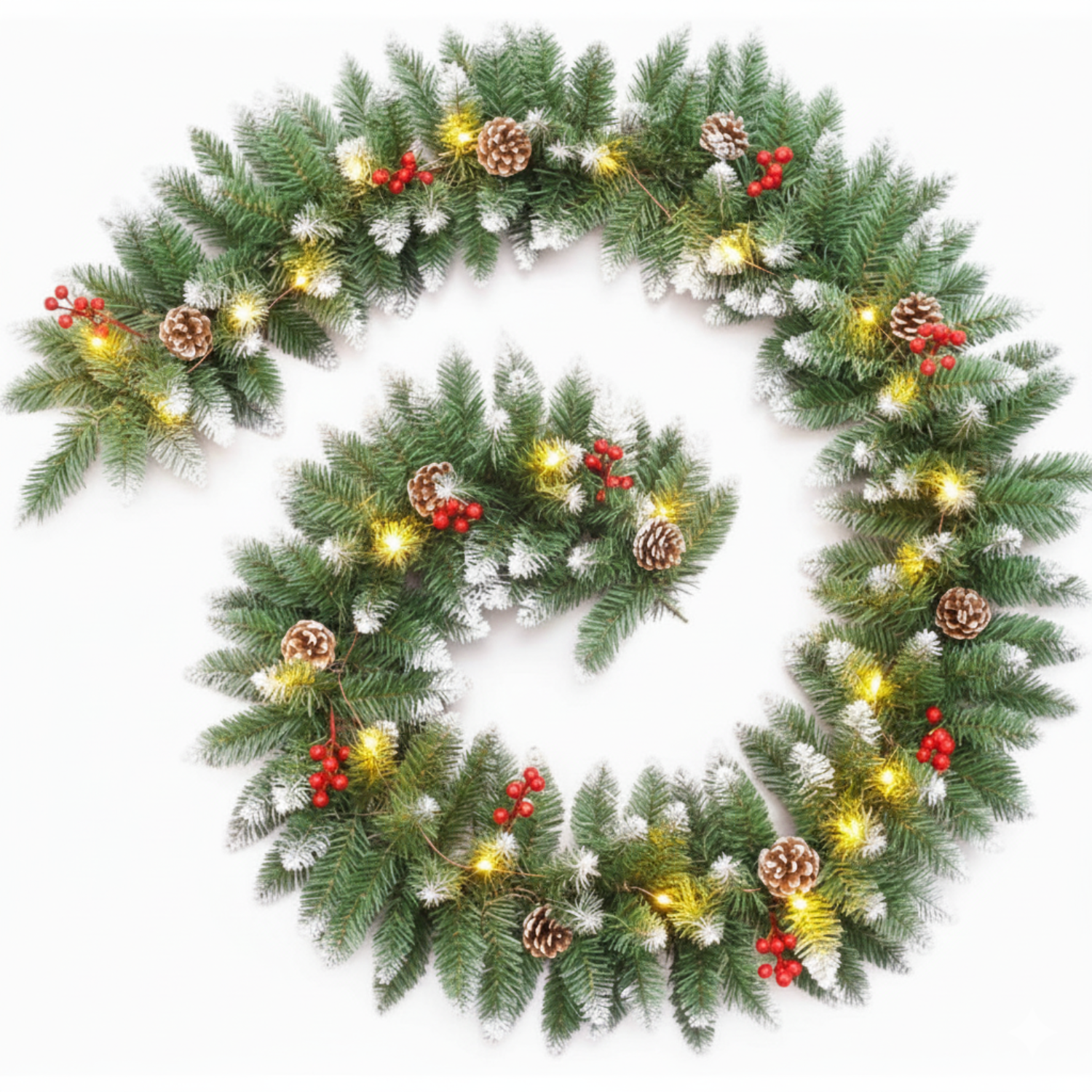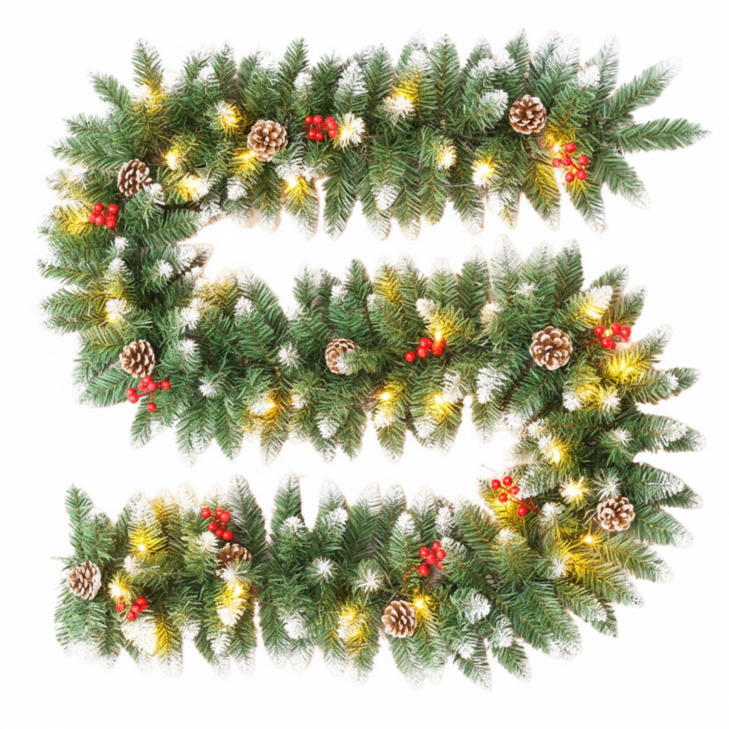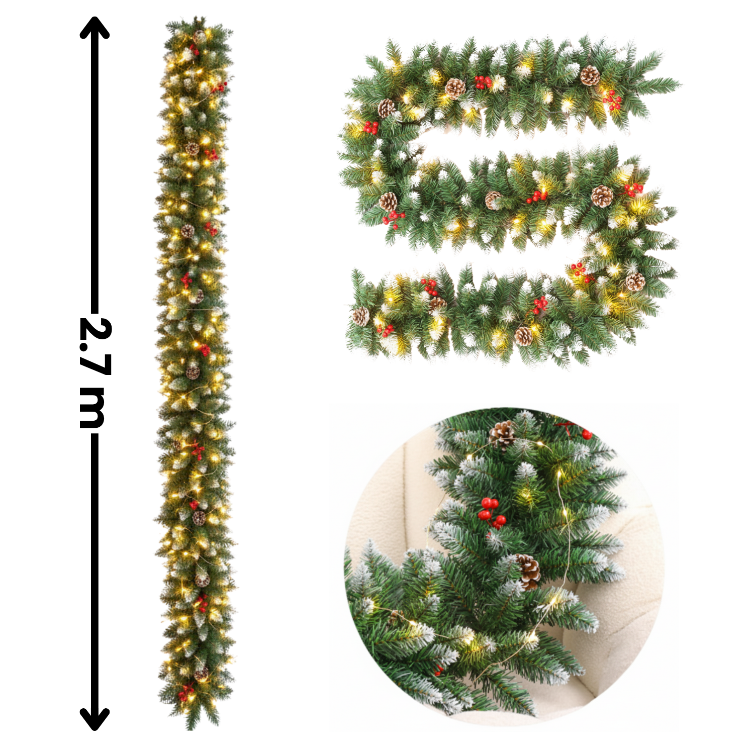 Aspect natural si montaj rapid pentru sarbatori reusite. Aceasta Ghirlanda de Craciun de 2.7 m aduce echilibrul corect intre verdele intens al bradului, accentele albe de zapada artificiala si nuantele calde ale conurilor de pin cu bobite rosii, fiind potrivita pentru decoratiuni de craciun in living, hol sau intrare. O decoratiune craciun versatila, modelabila, compatibila cu balustrade, seminee si usi, ce completeaza colectia de ornamente de craciun deja existente.
