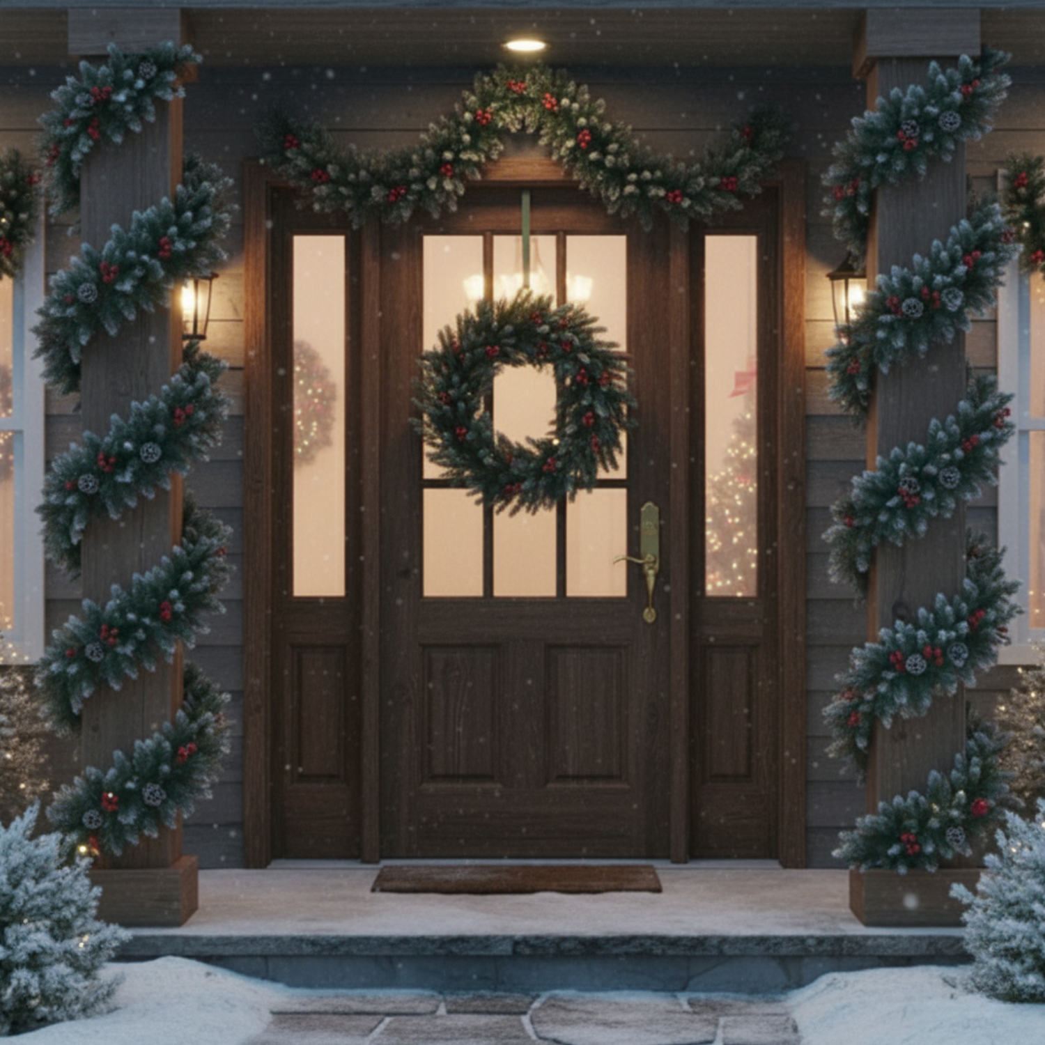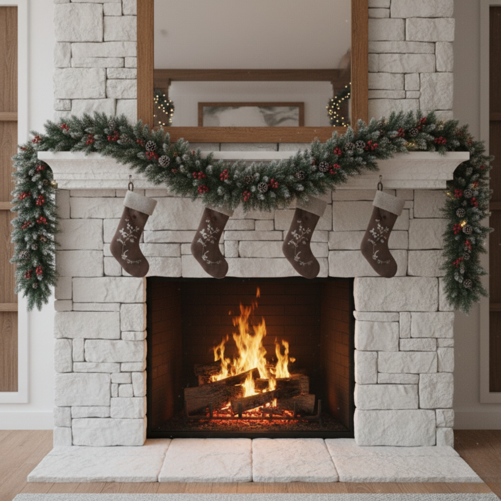 Utilizare la interior si exterior acoperit. Pe semineu creeaza un cadru primitor pentru serile in familie; la exterior, pe prispa sau sub terasa, adauga o nota festiva vizibila de la distanta. In combinatie cu o coronita pe usa, se obtine o intrare unitara, bine definita, cu linii coerente de sus pana jos.