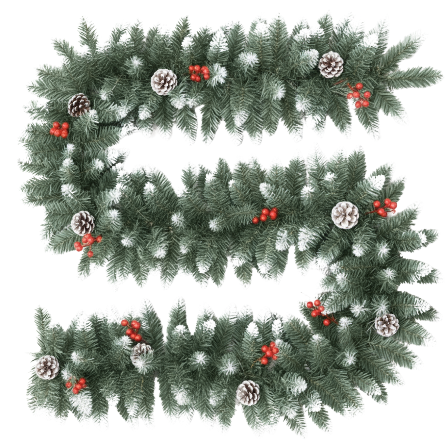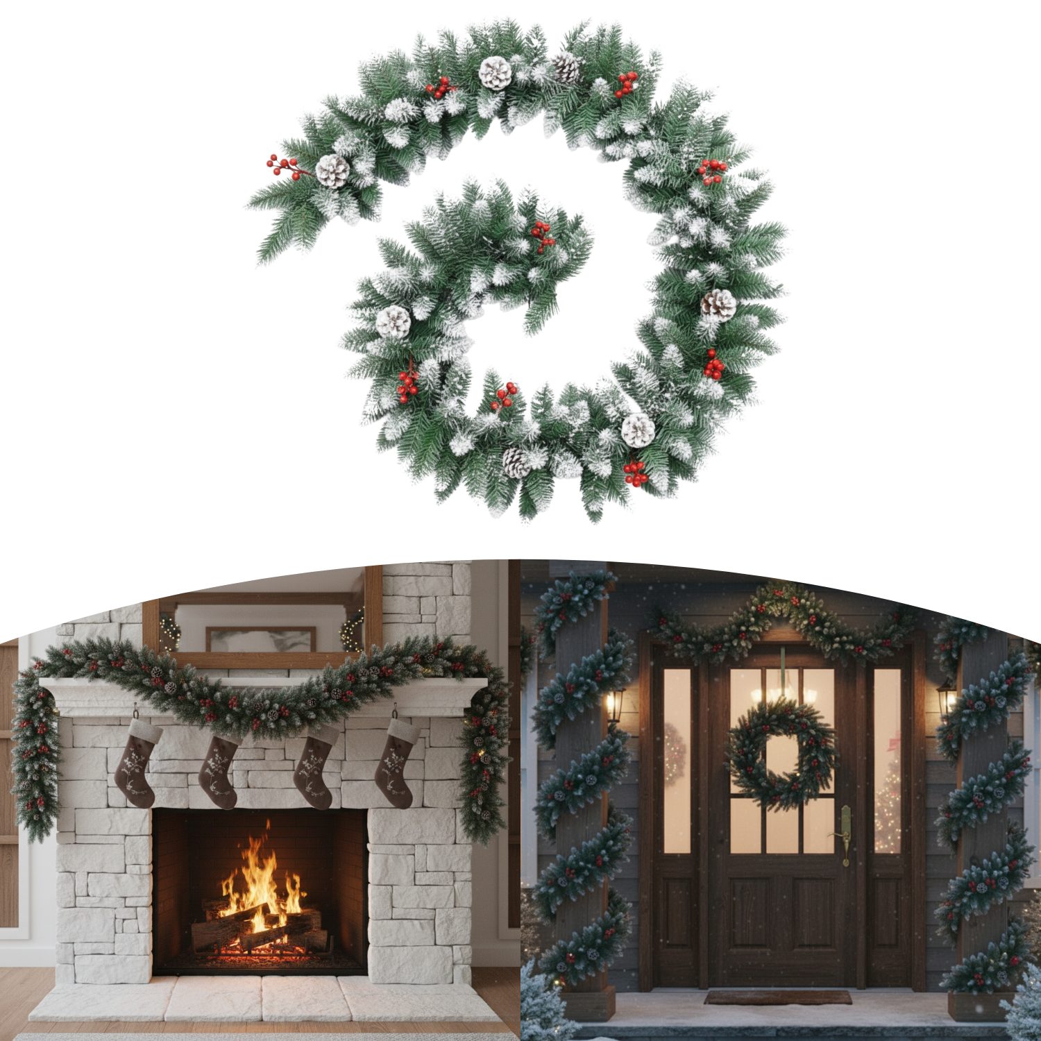 Aspect natural si montaj rapid pentru sarbatori reusite. Aceasta Ghirlanda de Craciun de 2.7 m aduce echilibrul corect intre verdele intens al bradului, accentele albe de zapada artificiala si nuantele calde ale conurilor de pin cu bobite rosii, fiind potrivita pentru decoratiuni de craciun in living, hol sau intrare. O decoratiune craciun versatila, modelabila, compatibila cu balustrade, seminee si usi, ce completeaza colectia de ornamente de craciun deja existente.