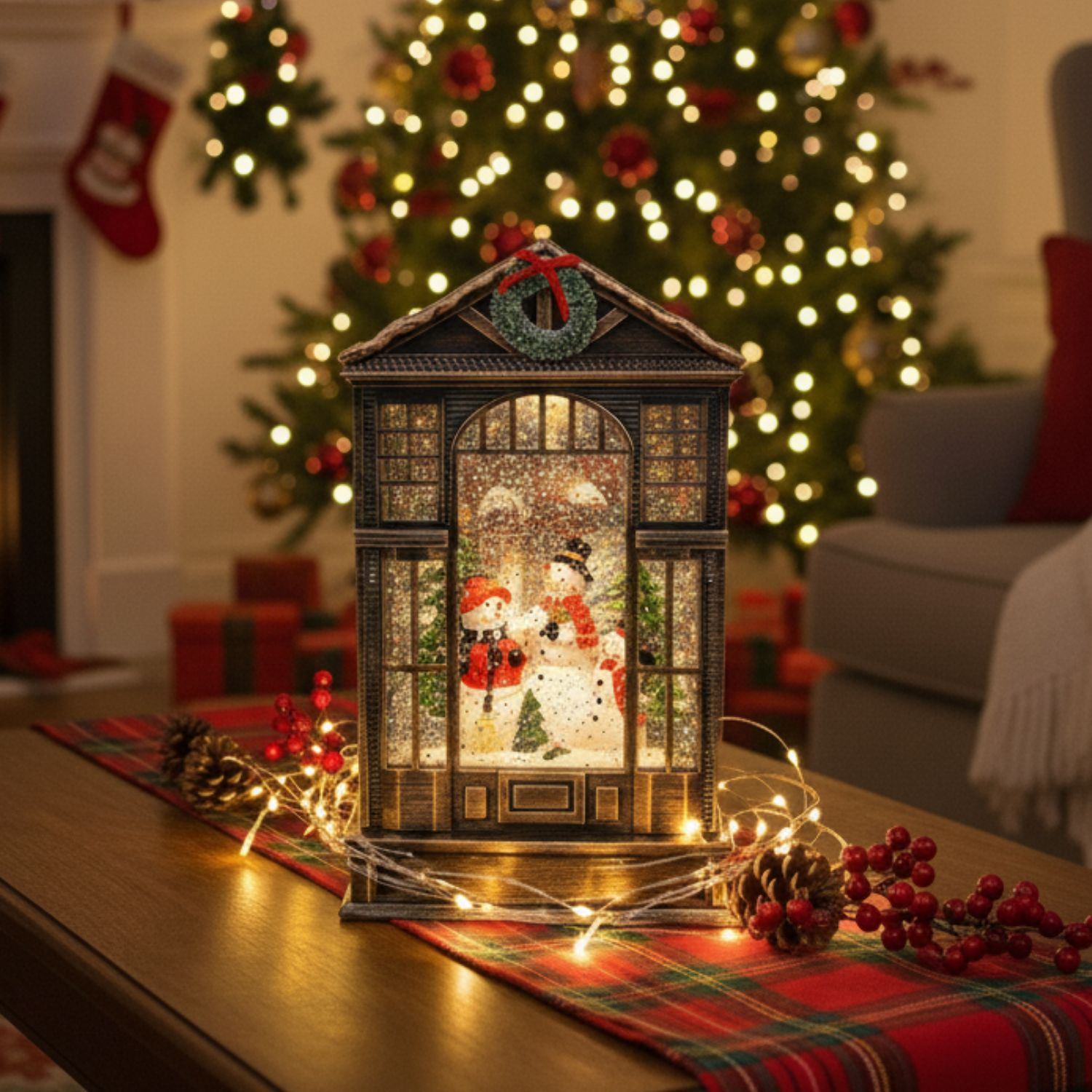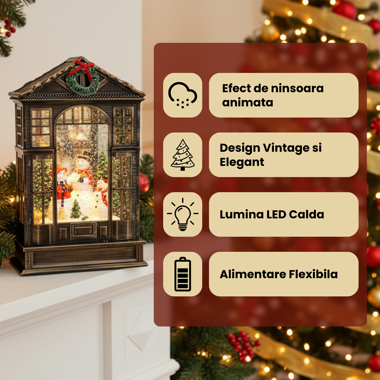 1x Felinar Craciun Vintage cu efect de ninsoare