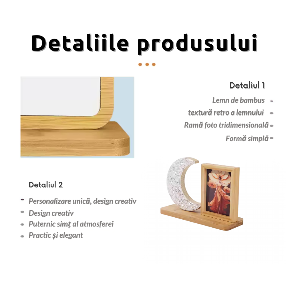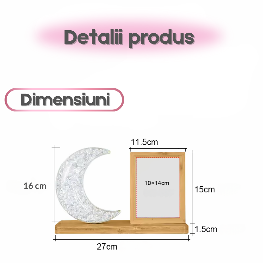 Transforma-ti spatiul cu aceasta rama foto iluminata si creeaza o ambianta primitoare in fiecare zi. ✨ Lampa LED cu rama foto in forma de luna inseamna tehnologie moderna imbinata cu emotia fotografiilor tale – o piesa decorativa unica, gata sa devina punctul de atractie al camerei si sa aduca zambete de fiecare data cand ii aprinzi lumina!
