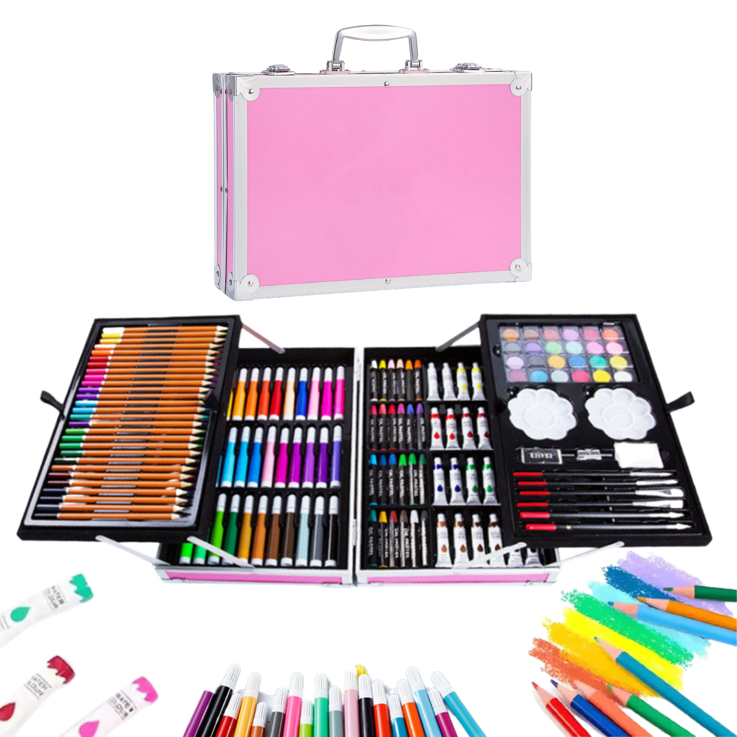 Descopera ✨Trusa de Arta Completa 145 Piese✨, solutia ideala pentru pasionatii de desen, pictura si orice forma de expresie artistica. Fie ca esti incepator, student la arte sau un artist avansat, acest set generos te ajuta sa-ti dezvolti creativitatea, oferind o varietate de instrumente esentiale. Proiectat cu atentie la detalii, setul include o gama larga de materiale care iti permit sa experimentezi diverse tehnici si medii, de la pasteluri la acuarele, de la schite la pictura in acril.