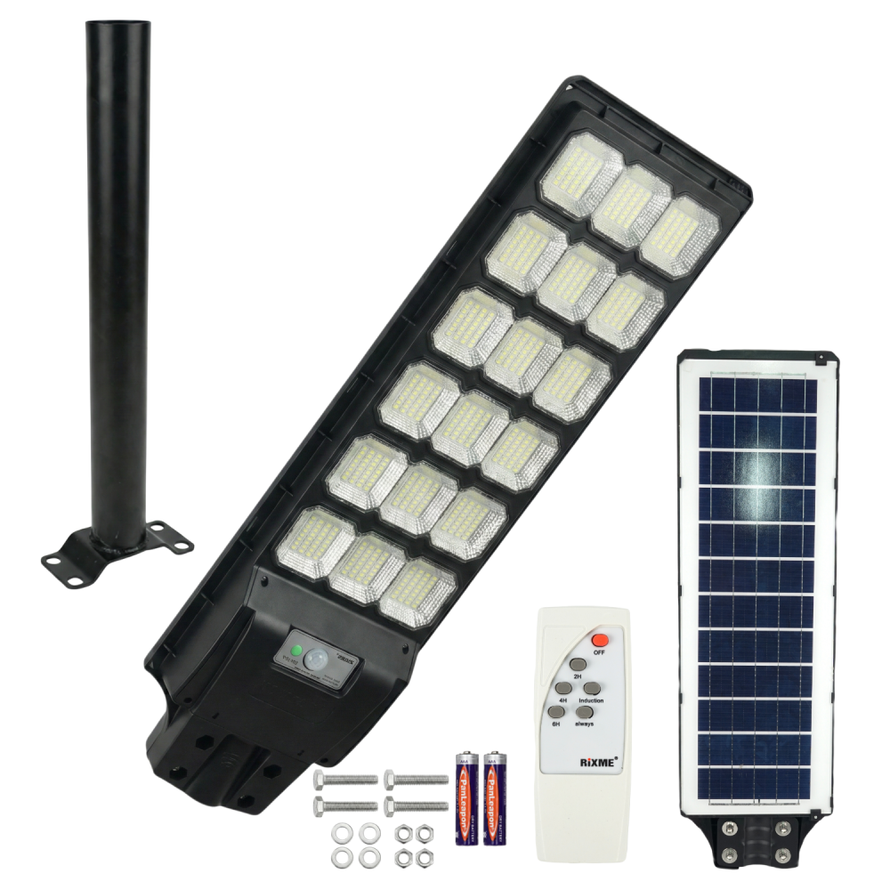 Vezi și: Lampă solară Rixme 1000W (design all-in-one, panou integrat, 3 moduri) | Lampă solară Rixme 300W (variantă compactă, 6 zone LED, timer 3/5/8h) | Lampă solară Rixme 1600W (extra-putere, două panouri solare pentru arie extinsă)