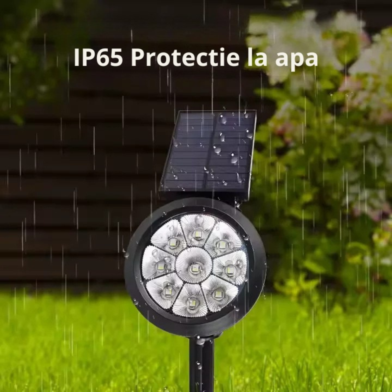 Carcasa este proiectata pentru intemperii: rezistenta la ploaie, jeturi de apa si praf (IP65), plus variatii de temperatura. O poti lasa instalata tot sezonul, fara batai de cap.