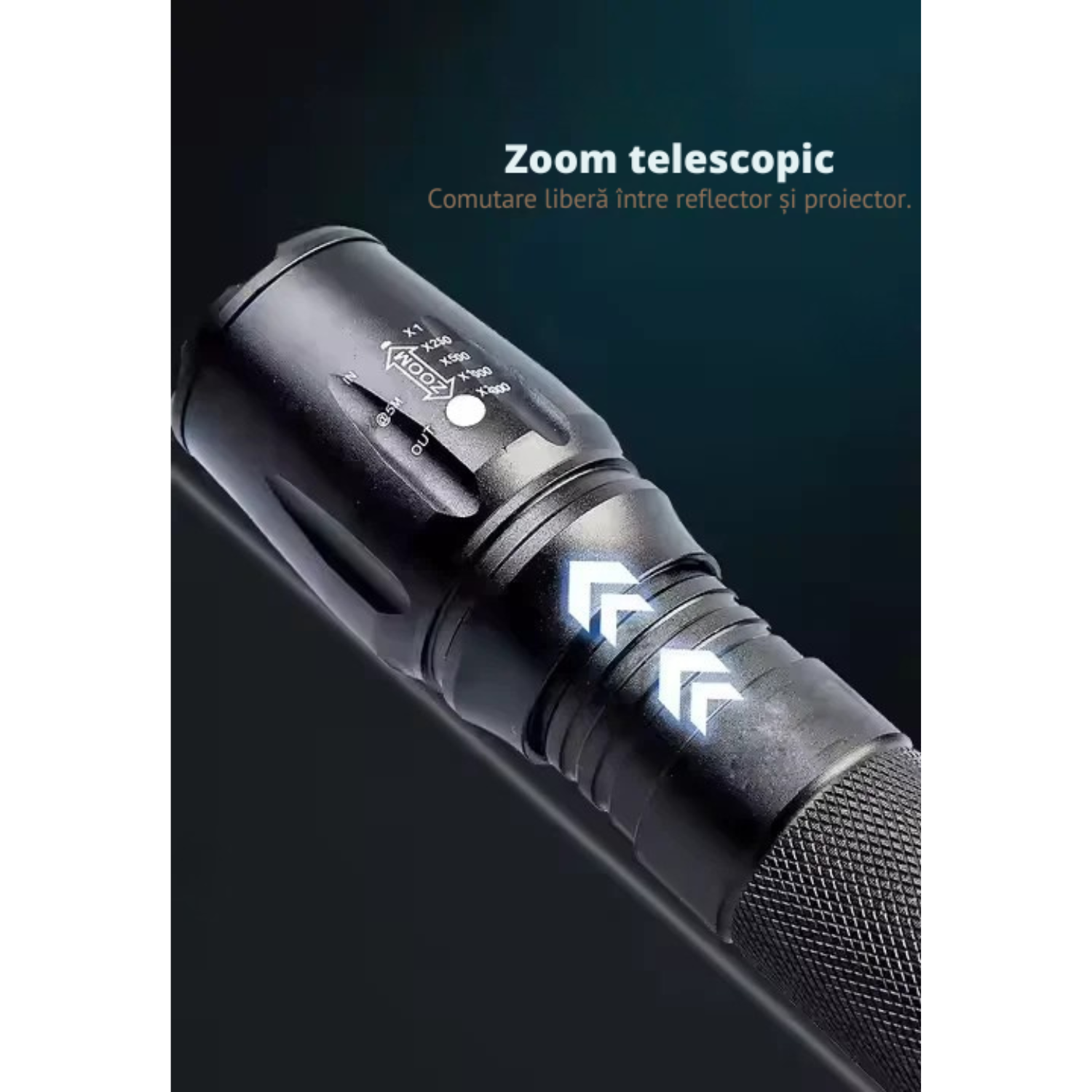 Daca ai nevoie de o lanterna LED puternica, rezistenta si versatila, acest model este alegerea perfecta! Cu 800 lumeni de intensitate, focus ajustabil si 5 moduri de iluminare, aceasta lanterna iti ofera vizibilitate excelenta in orice conditii – fie ca esti in drumetii, camping sau ai nevoie de o sursa de lumina in situatii de urgenta.
