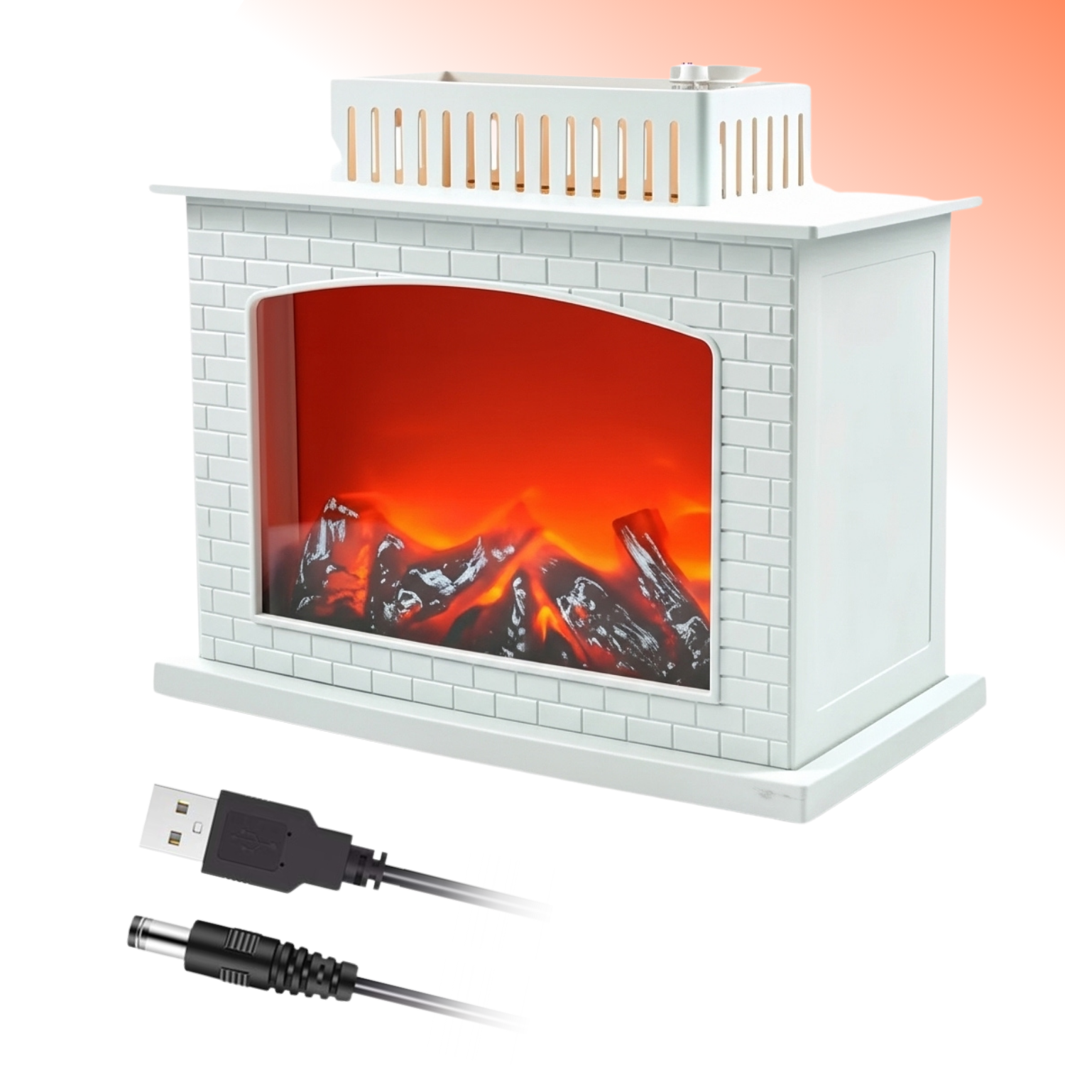 Semineu Decorativ, Lumina LED cu simulare flacari, Model Vintage , Cu iluminare calda, Alimentare priza, Alimentare pe baterii, 21.5 x 21. cm, Pentru interior, Plastic, Alb
