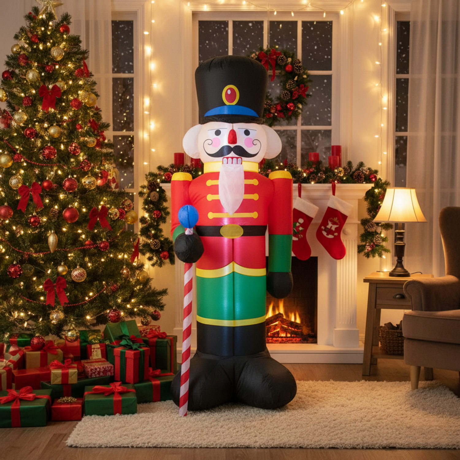 Decoratiunea ideala pentru sezonul festiv, acest spargator de nuci gonflabil aduce instant atmosfera de sarbatoare in orice spatiu. Ca decoratiune gonflabila versatila, este potrivit atat ca decor craciun pentru curte, cat si pentru living sau hol. Iluminarea LED integrata asigura vizibilitate pe timp de noapte, iar alimentarea la priza 230V simplifica utilizarea zilnica. Se potriveste perfect in categoria decoratiuni de craciun si ornamente de craciun pentru exterior si interior, putand fi si o idee inspirata de cadouri de craciun pentru familie.