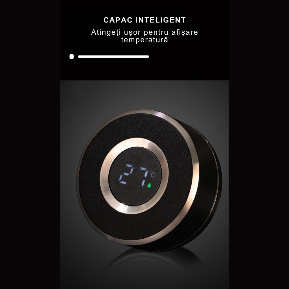 Termosul inteligent iese in evidenta datorita designului sau elegant si functional. Cu un ecran LED integrat, poti vedea in timp real temperatura lichidului din interior, evitand astfel surprizele neplacute. Tehnologia inteligenta se activeaza la o simpla atingere, oferindu-ti un mod simplu si rapid de a verifica daca bautura este calda sau rece. Beneficiezi de un aspect premium, dar si de un produs durabil, realizat cu materiale de calitate precum otelul inoxidabil, care asigura rezistenta la coroziune si o igiena perfecta.