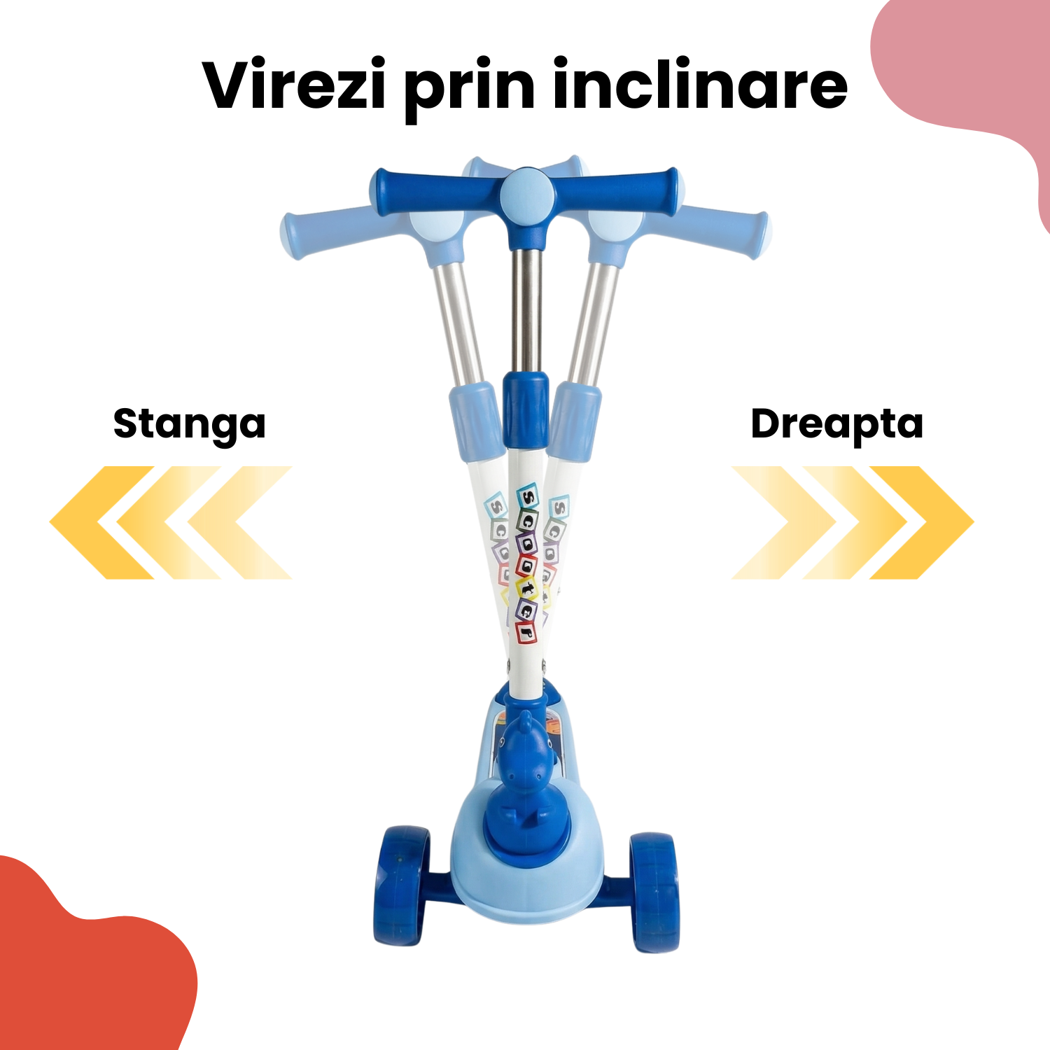 Sistemul inovator de virare prin inclinare ajuta copilul sa invete rapid sa manevreze trotineta, dezvoltandu-si echilibrul si coordonarea