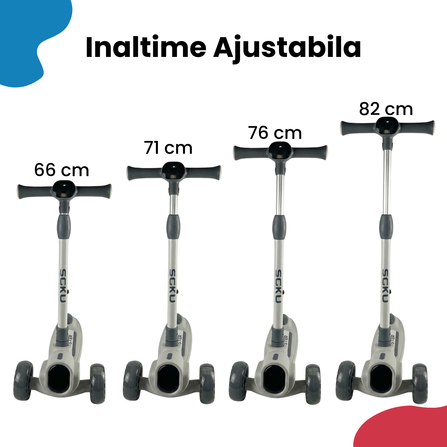 ✅ Ghidon reglabil – 4 niveluri de inaltime (66 cm, 71 cm, 76 cm, 82 cm) pentru utilizare indelungata