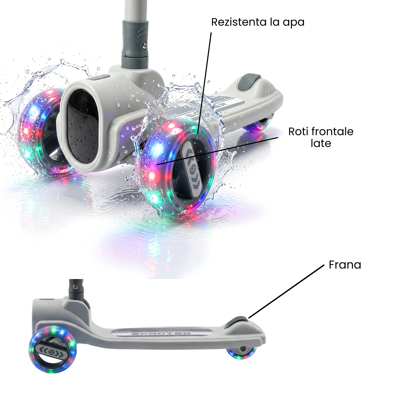 ✅ Roti LED luminoase – se aprind in timpul mersului, fara baterii, pentru un efect spectaculos si vizibilitate sporita