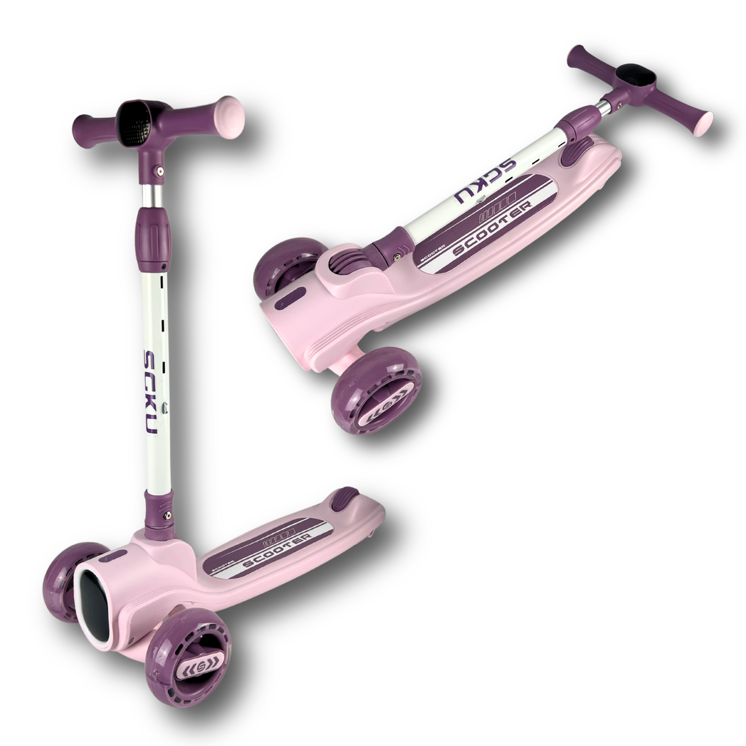 Trotineta Copii, 3+ Ani, Paliabila, Roti Luminoase si Muzica Lumini, Roti Late, Suprafata Antiderapanta, Frana, Inaltime Ghidon Reglabil 66-82 cm, Ghidon cu Inclinare, Mov