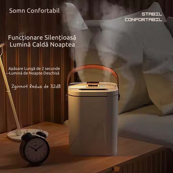 Daca esti in cautarea unui dispozitiv practic, eficient si versatil care sa te ajute sa mentii aerul proaspat atat acasa, cat si la birou sau in calatorii, acest umidificator portabil cu duza dubla este solutia ideala. Beneficiezi de o serie de functii avansate (pulverizare dubla, iluminare de noapte, ajustare in 4 trepte, consum redus de energie), toate intr-un design compact si atragator. In plus, zgomotul redus si capacitatea generoasa il transforma intr-un dispozitiv potrivit pentru orice incapere. Fa-ti viata mai confortabila si bucura-te de un aer placut cu acest umidificator inteligent! 💦✨